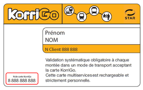 💻 Pour un achat en ligne, renseignez le numéro à 10 chiffres au dos de la carte KorriGo Services dans la zone dédiée sur le site du partenaire.