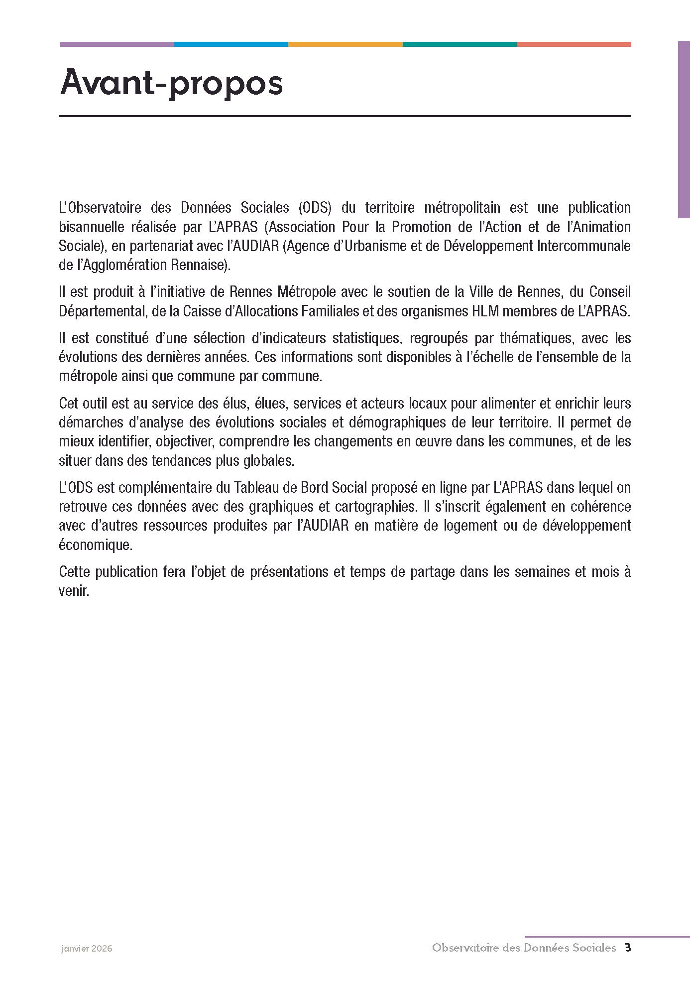 C’est sur ce principe qu’ont été créés en 1990 le Tableau de Bord Social (actualisation chaque année en octobre et en décembre) des quartiers rennais et depuis 2012 des communes de Rennes Métropole en 2001, l’Observatoire des Données Sociales de Rennes Métropole (actualisation tous les 2 ans) et en 2002 l’Observatoire de la Délinquance (actualisation annuelle).